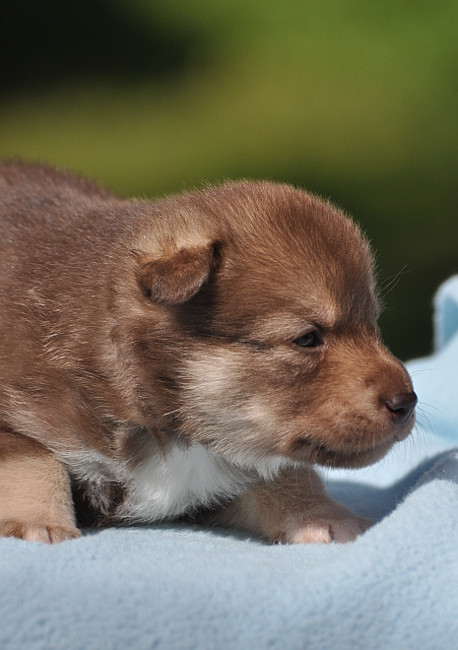 Nimiä on myös kovasti pupseille mietitty ja nyt ne on päätetty. Pennut saavat kesäiset nimet, onhan nyt kesä parhaimmillaan. :) Herrapennusta tulee Tuhkavuorten Konnanmarja ja tytöt saavat nimikseen Tuhkavuorten Kaislasara, Kangasvuokko, Ketoneilikka, Karpalonkukka ja Korpikaisla. Tytöistä ei ole vielä mitenkään päätetty kuka on minkäkin niminen, katsellaan niitä sitten myöhemmin, kun vähän selvinnee, mikä pupsi lähtee kenenkin luokse asustamaan. :)