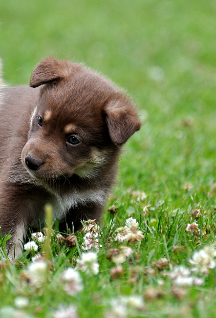 Pupelot on jo reilu viisiviikkoisia, ja voi sitä menoa!! Hobitit on tosi paljon ulkona, ja meno on aikamoista. Ruskalle on varsin ok nyt, että koko mun oma lauma hengaa pupsien ja Ruskan kanssa. Se tuntuu välillä olevan varsin tyytyväinen, kun mun lauman otukset leikittää ja viihdyttää pupseja, ja mammakoira itse voi hengailla pitkin pihaa ja keksiä muita juttuja. :) Omat koirani suhtautuu niin fiksusti pentuihin, että kaikki voivat huoletta ulkoilla ja hillua pihalla, ihan koko porukka. :)